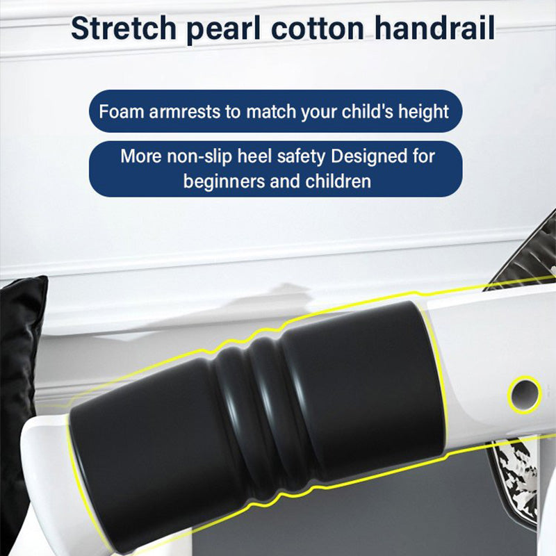 Resistente e amigo das crianças: a segurança é prioridade. Fabricado com materiais duráveis e adequados para crianças, possui uma base estável para saltos seguros e pegas ergonómicas para um apoio confortável e firme.